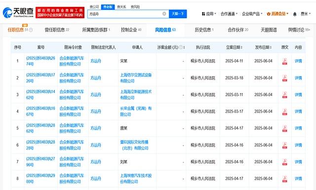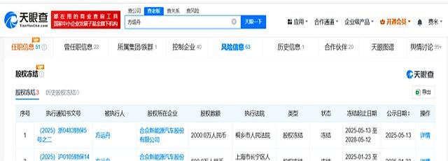 天眼查数据显示,方运舟现在可是背负着多条限制消费令,更让人大跌眼镜的是,他持有的哪吒汽车关联企业——合众新能源汽车股份有限公司的股权,竟然被全部冻结了!